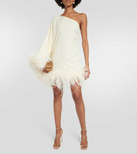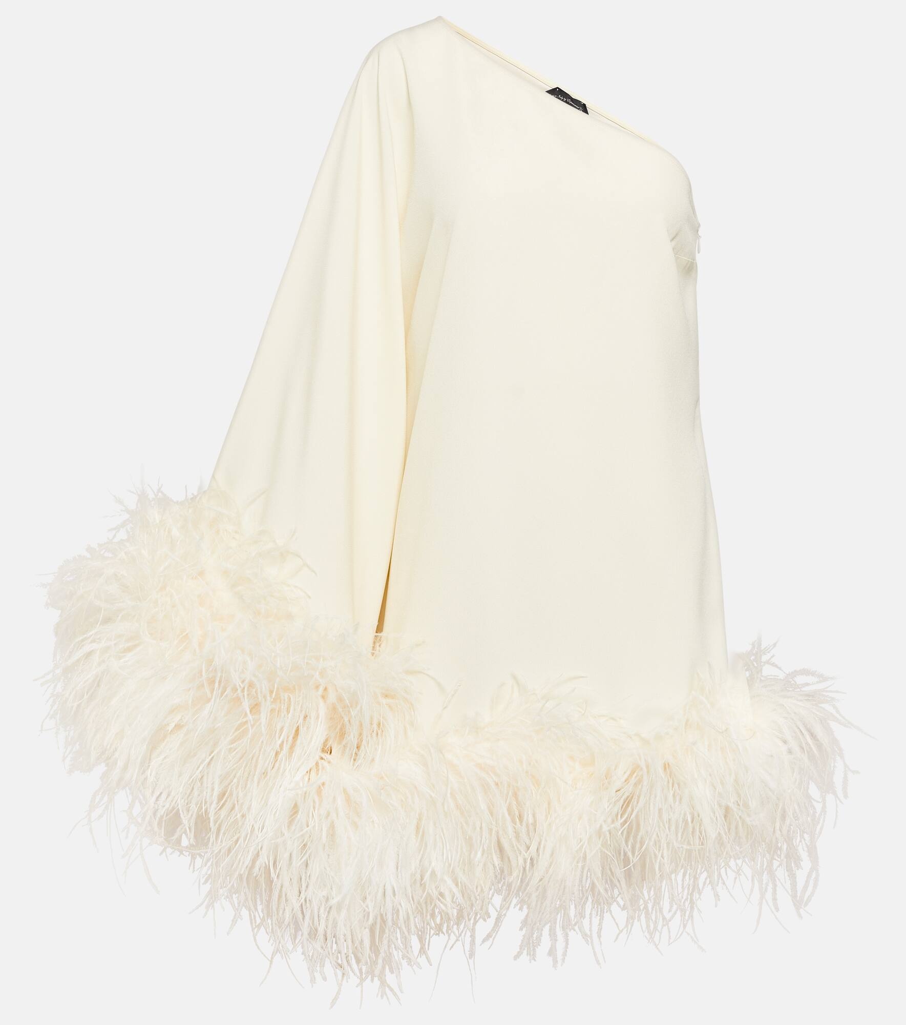 Piccolo Ubud one-shoulder feather-trimmed crepe mini dress