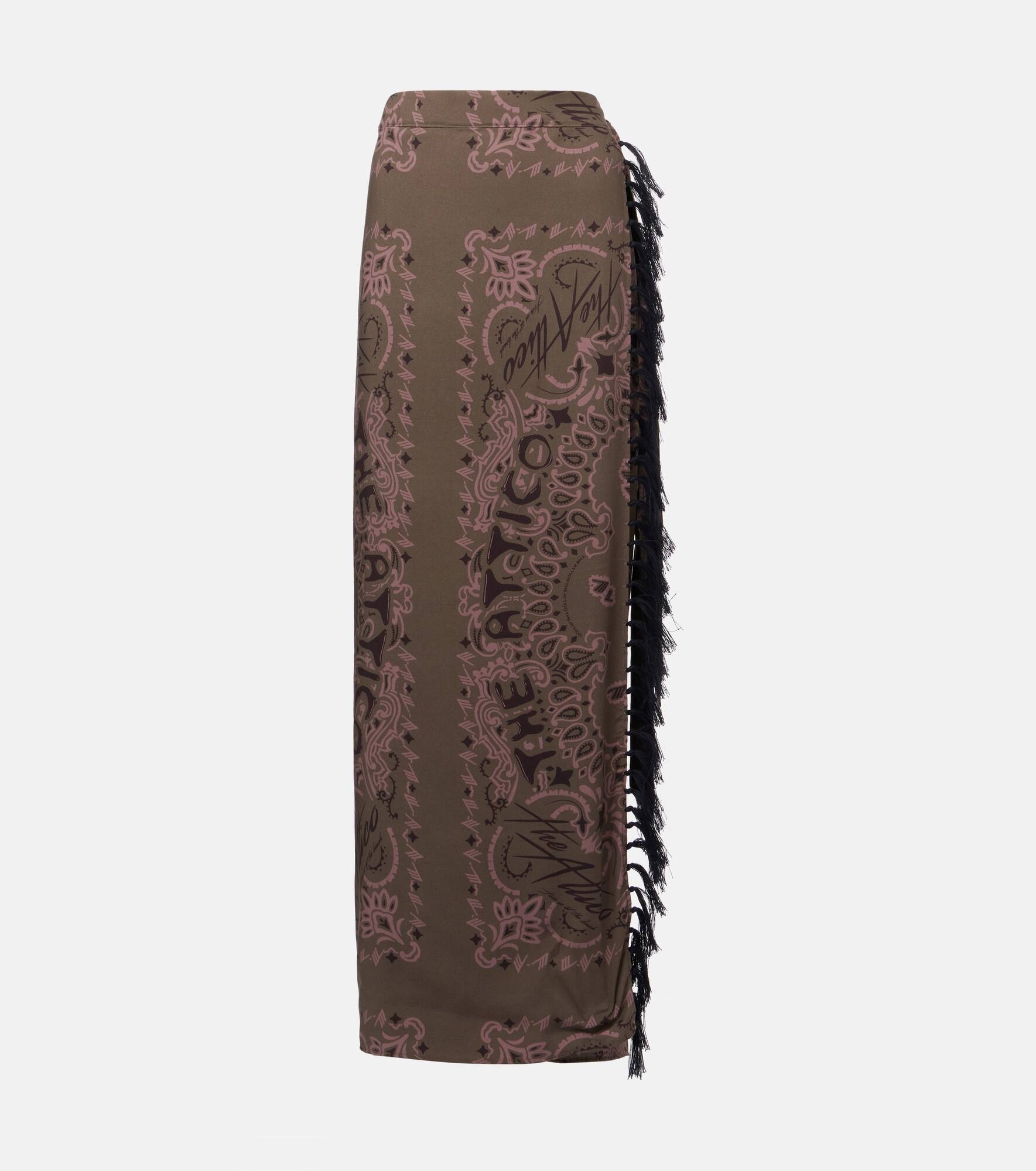Radiate glamour from beach to boardwalk in this beach cover-up from The Attico. Decorated all over with a logo-detailed, bandana-inspired print, it's made from lightweight, breathable muslin with tasseled finishes. Product Details - Material: 100% viscose - Care instructions: dry clean - Made in Italy - Designer color name: Military Green - Item color: green - Item number: P01034831 Size & Fit - Length 110cm-43.5" - Width 136cm-53.5" - Length of fringe 8,5cm-3.5"