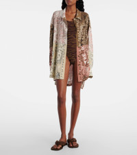 The Attico’s message is simple – it’s time to dress up. Decorated all over with a colorblocked, bandana-inspired print, this muslin shirt is shaped into a relaxed, oversized silhouette with a split hem and dropped shoulders. Product Details - Material: 100% viscose - Care instructions: machine wash at 40 degrees - Made in Italy - Designer color name: Multicolor - Item color: multicolor - Closure: buttoned front - Cuff: one button - Item number: P01034824 Size & Fit - True to size - Dropped shoulders - Oversized - Non-stretchy fabric - Falls below the hip - The model seen in the picture is 178cm-5'10" and wearing a size IT 40