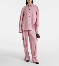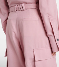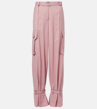 The Attico’s message is simple – it’s time to dress up. These pants make a fitting case, combining a tailored silhouette with an unconvential edge through their cargo pockets and ankle belt straps. Product Details - Material: 55% polyester, 45% wool - Care instructions: dry clean - Made in Italy - Color: pink - Designer color name: Rose - Item color: pink - Lining: 100% viscose - Closure: zipper, hook fastening - Pockets: side slit pockets, back pockets - Detachable belt - Item number: P01108545 Size & Fit - True to size - Non-stretchy fabric - Straight leg - The model seen in the picture is 178cm-5'10" and wearing a size IT 40