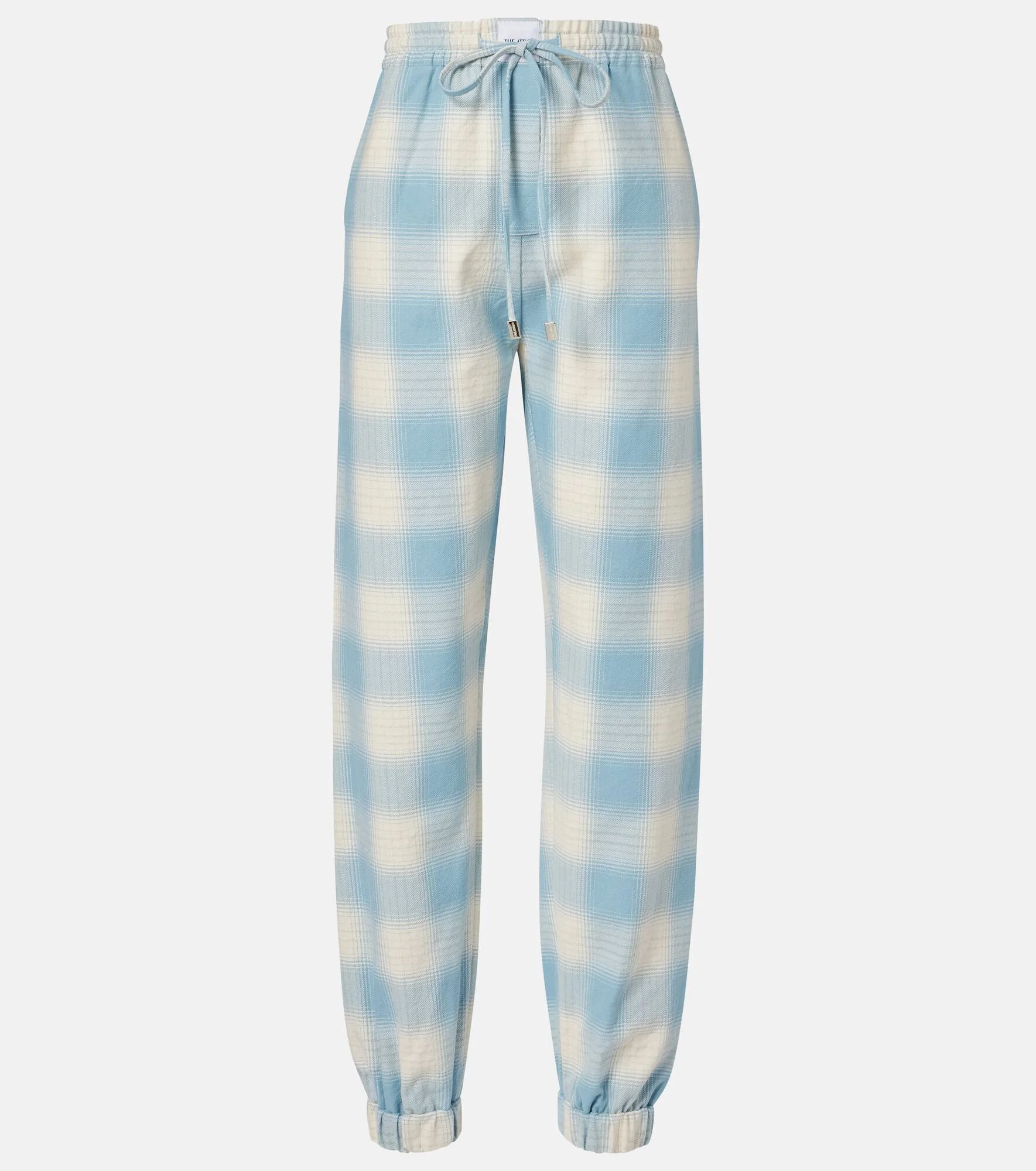 The Attico’s message is simple – it’s time to dress up. Crafted from cotton and wool, these checked pants feature tapered cuffs and an elasticated drawstring waist. Product Details - Material: 92% cotton, 6% wool, 1% elastane, 1% other fibres - Care instructions: machine wash at 30 degrees - Made in Italy - Designer color name: Light Blue / White - Item color: blue, white - Lining: 100% cotton - Elasticated drawstring waist - Pockets: side slit pockets - Item number: P01107592 Size & Fit - True to size - Elasticated waist - Adjustable at the waist - Non-stretchy fabric - Tapered leg - The model seen in the picture is 178cm-5'10" and wearing a size IT 40