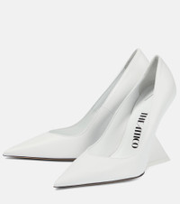 The playful vision of The Attico is spotlighted by the Cheope pumps. This leather style is characterized by sculptural curved heels that nod to the Art Deco movement. Product Details - Sole: leather insole and sole - Toe shape: pointed toe - Upper: leather - Comes with dust bags, Comes with a box - Designer color name: White - Made in Italy - Item number: P00744636 Size & Fit - True to size - Slightly narrow at the back - European sizes - 11,5cm-4.5" heel (size EU 38)