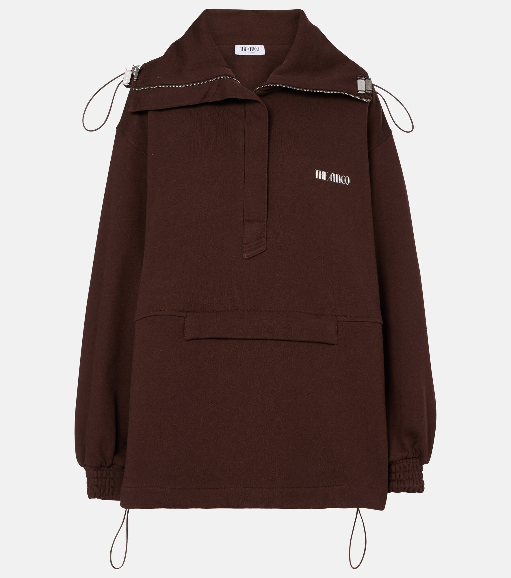 This sweatshirt by The Attico is crafted from warm cotton fleece, effortlessly blending casual comfort with cool, elevated style. This piece features a drawstring at the hem for adjustable fit, elasticated cuffs, the brand's signature, and a half-zipped closure. Product Details - Material: 100% cotton - Care instructions: hand wash - Made in Portugal - Designer color name: Dark Brown - Item color: brown - Material II: 100% cotton - Cuff: elasticated - Pockets: zipped pocket - Drawstring at the hem for adjustable fit - Closure: concealed zipper - Item number: P01045965 Size & Fit - True to size - Designed for an extremely oversized fit - Dropped shoulders - Adjustable hem - Slightly stretchy fabric - Falls below the hip - The model seen in the picture is 178cm-5'10" and wearing a size IT 40