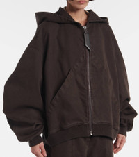 Product Details - Material: 100% cotton - Care instructions: dry clean - Made in Italy - Designer color name: Brown - Closure: zipped front - Pockets: side slit pockets - Hood - Item number: P01004657 Size & Fit - True to size - Dropped shoulders - Elasticated hem - Oversized - Non-stretchy fabric - Falls below the hip - The model seen in the picture is 178cm-5'10" and wearing a size IT 40