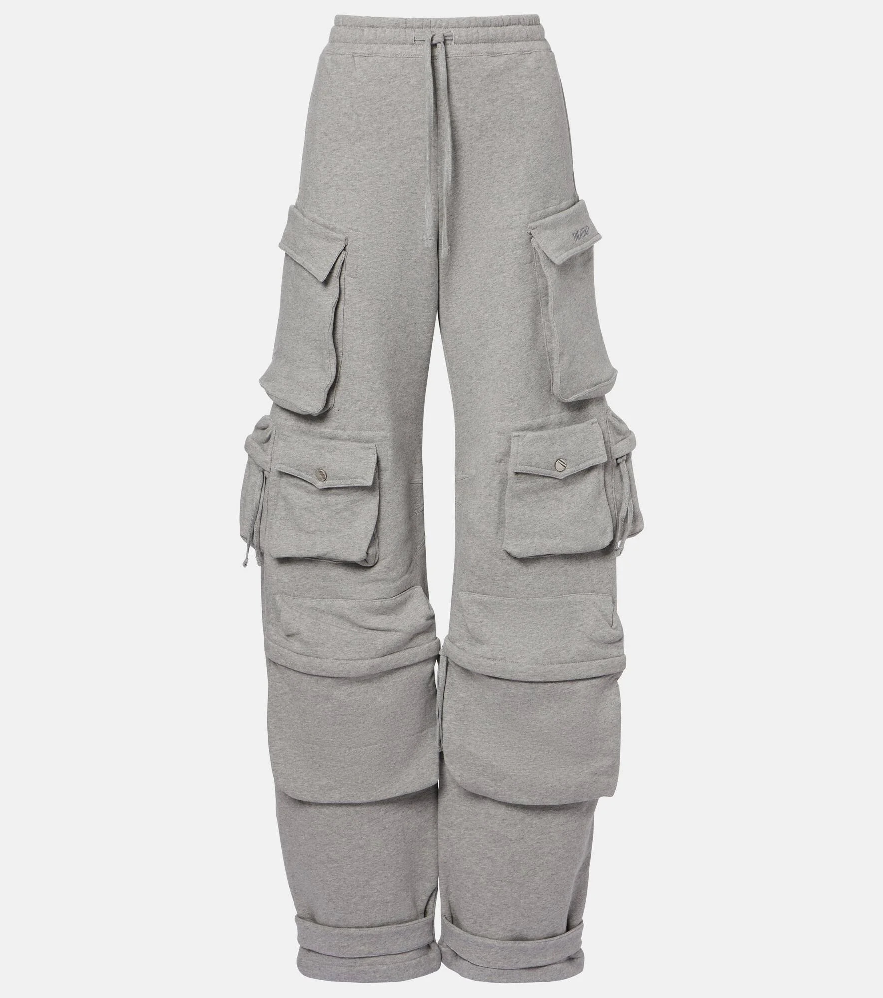 These sweatpants from The Attico are crafted from pure cotton jersey and feature an elasticated waistband. The pair is shaped to a curved, wide-leg silhouette and is complete with statement cargo pockets. Product Details - Material: 100% cotton - Care instructions: machine wash at 30 degrees - Made in Portugal - Designer color name: Melange Grey - Item color: gray - Lining: 100% cotton - Elasticated drawstring waist - Pockets: side slit pockets, cargo pockets - Item number: P01107603 Size & Fit - True to size - Elasticated waist - Adjustable at the waist - Slightly stretchy fabric - Wide-leg - The model seen in the picture is 178cm-5'10" and wearing a size IT 40