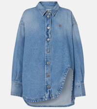 Blending casual ease with style, the Diana shirt by The Attico is crafted from cotton denim with contrast topstitching. This oversized piece features a classic pointed collar, buttoned front, a subtle logo detail, and a side slit. Product Details - Material: 100% cotton - Care instructions: machine wash at 30 degrees - Made in Italy - Designer color name: Sky Blue - Item color: blue - Collar: classic (Straight point) - Cuff: buttoned - Closure: buttoned front - Side slits - Item number: P01045964 Size & Fit - True to size - Designed for an extremely oversized fit - For a closer fit, we recommend taking one size down - Dropped shoulders - Non-stretchy fabric - Falls below the hip - The model seen in the picture is 178cm-5'10" and wearing a size IT 40