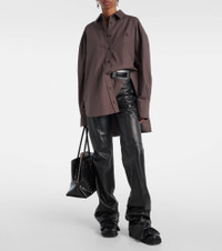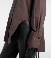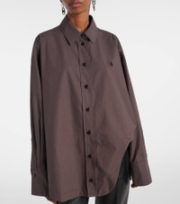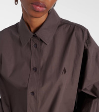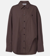 Blending casual ease with style, the Diana shirt by The Attico is crafted from cotton poplin. This oversized piece features a classic pointed collar, buttoned front, and a subtle logo detail, and a side slit. Product Details - Material: 100% cotton - Care instructions: machine wash at 30 degrees - Made in Italy - Designer color name: Dark Brown - Item color: brown - Collar: classic (Straight point) - Cuff: one button - Hem: uneven - Closure: buttoned front - Item number: P01045968 Size & Fit - True to size - For a closer fit, we recommend taking one size down - Dropped shoulders - Oversized - Non-stretchy fabric - Falls below the hip - The model seen in the picture is 178cm-5'10" and wearing a size IT 40