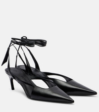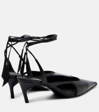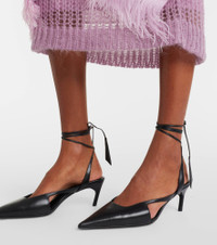The Attico’s message is simple – it’s time to dress up. The Diane leather slingback pumps sit atop 55mm kitten heels and feature self-ties that elegantly wrap around the legs. Product Details - Upper: lamb leather - Lining: leather - Sole: leather insole and sole - Color: black - Toe shape: pointed toe - Made in Italy - Includes: shoe box, dust bag - Designer color name: Black - Item number: P01128772 Size & Fit - True to size - European sizes - 5,5cm-2" heel