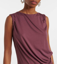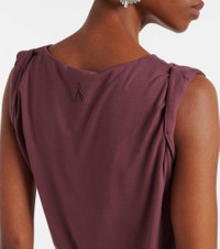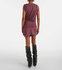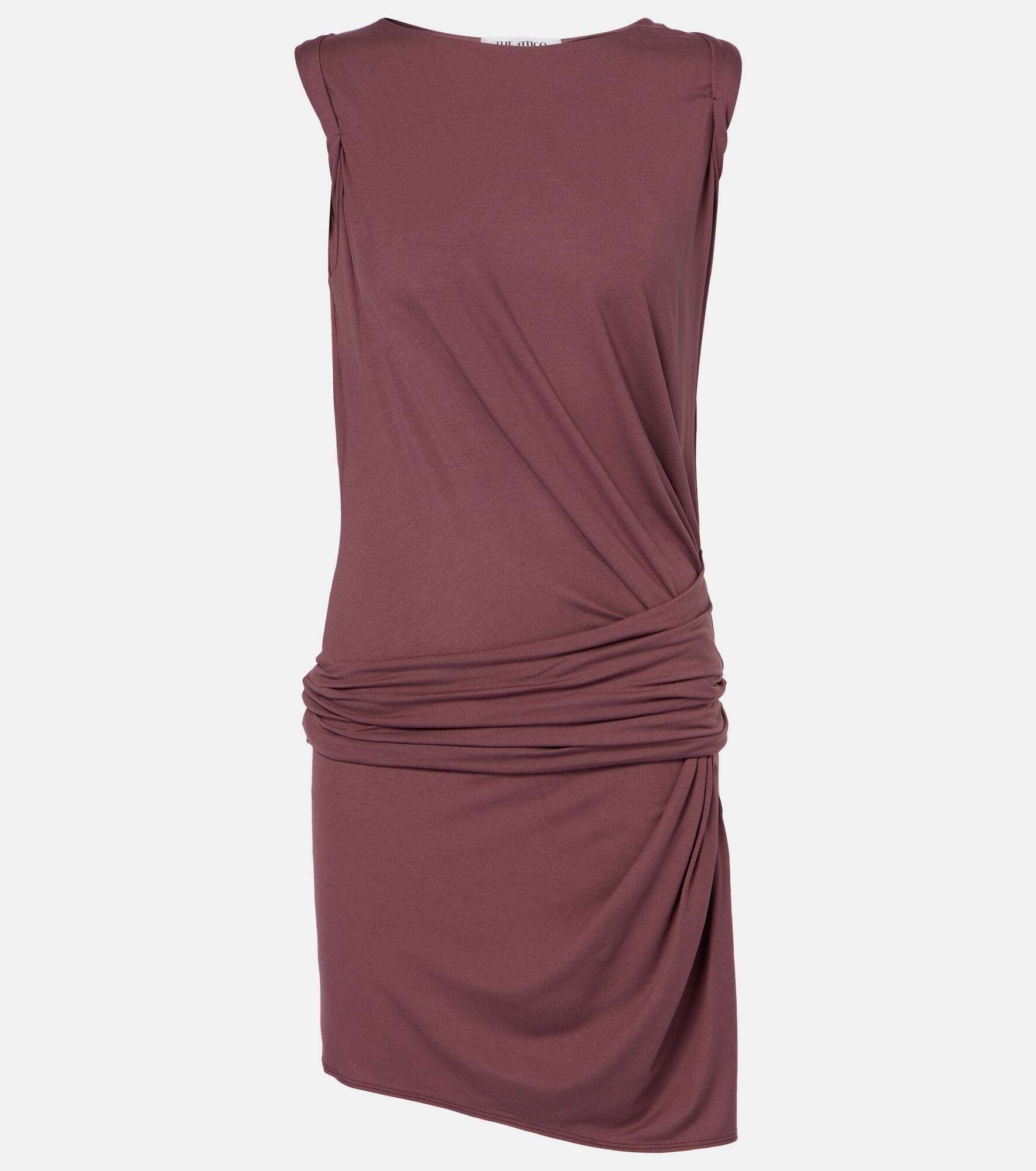 This jersey minidress from The Attico adds intrigue with its drop-waist accented by a gathered hip and twisted waistband. The striking design features an embroidered monogram at the back and a draped skirt with a side slit. Product Details - Material: 95% viscose, 5% elastane - Care instructions: hand wash - Made in Italy - Designer color name: Dark Mauve - Item number: P01015379 Size & Fit - True to size - Straight fit - Stretchy fabric - The model seen in the picture is 178cm-5'10" and wearing a size IT 40