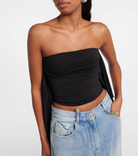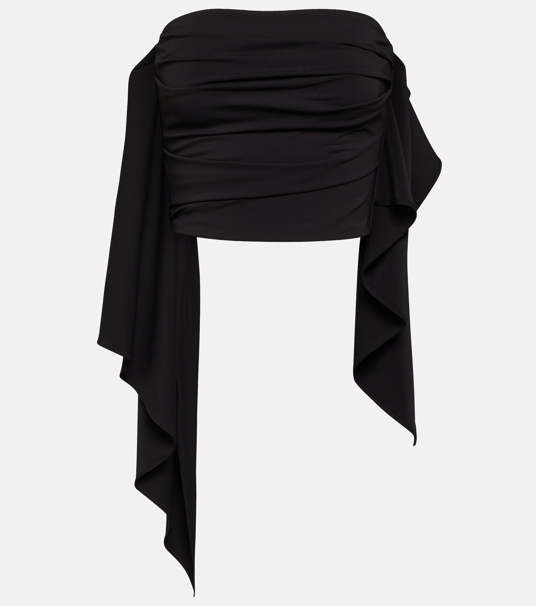 Product Details - Material: 68% viscose, 27% polyamide, 5% elastane - Care instructions: hand wash - Made in Italy - Designer color name: Black - Material II: 75% acetate, 20% polyamide, 5% other fibres - Closure: zipped back - Item number: P00887108 Size & Fit - True to size - Strapless - Fitted - Stretchy fabric - Cropped - The model seen in the picture is 178cm-5'10" and wearing a size IT 40