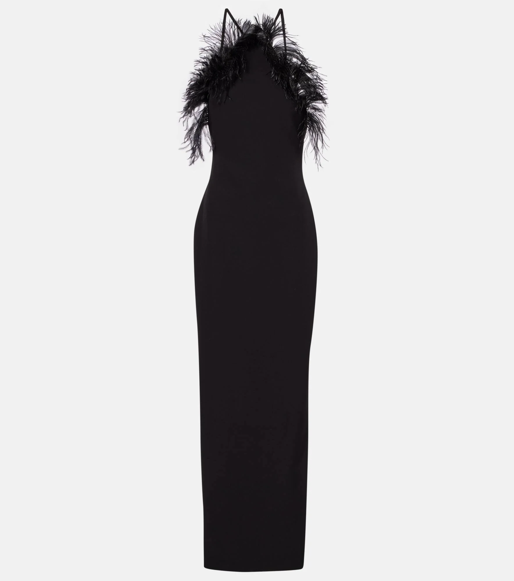 The Attico’s message is simple – it’s time to dress up. This glamorous floor-length gown is shaped to a sculpted, low-back silhouette and trimmed with ostrich feathers. Product Details - Material: 89% polyester, 11% elastane - Care instructions: hand wash - Made in Italy - Designer color name: Black - Item color: black - Lining: 65% acetate, 35% polyester - Trim: 100% ostrich feathers - Closure: concealed zipped back - Long vent - Contains non-textile parts of animal origin - Item number: P01108529 Size & Fit - True to size - Low back - Fitted - Non-stretchy fabric - slit length 76cm-30" - The model seen in the picture is 178cm-5'10" and wearing a size IT 40