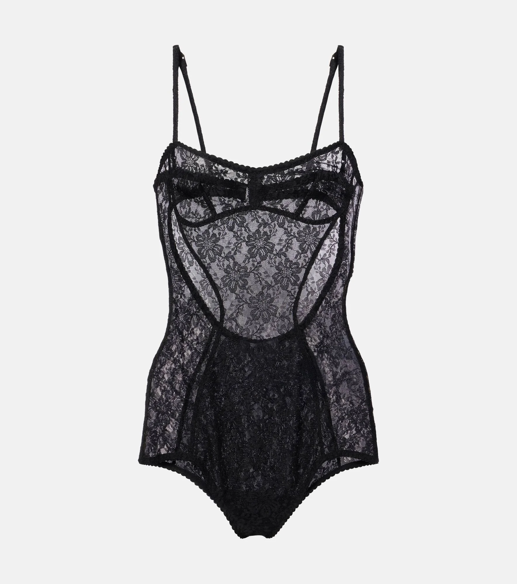 The Attico’s message is simple – it’s time to dress up. This simple yet striking bodysuit is intricately crafted from floral lace with adjustable shoulder straps. Product Details - Material: 96% polyamide, 4% elastane - Care instructions: hand wash - Made in Italy - Designer color name: Black - Item color: black - Lining: 82% polyamide, 18% elastane - Adjustable shoulder straps - Closure: hook fastening - Item number: P01107590 Size & Fit - True to size - Low back - Semi-sheer - Fitted - Slightly stretchy fabric - Low-cut leg - The model seen in the picture is 178cm-5'10" and wearing a size IT 40