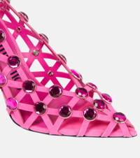 Grid crystal-embellished suede pumps