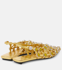 Grid metallic leather slingback flats