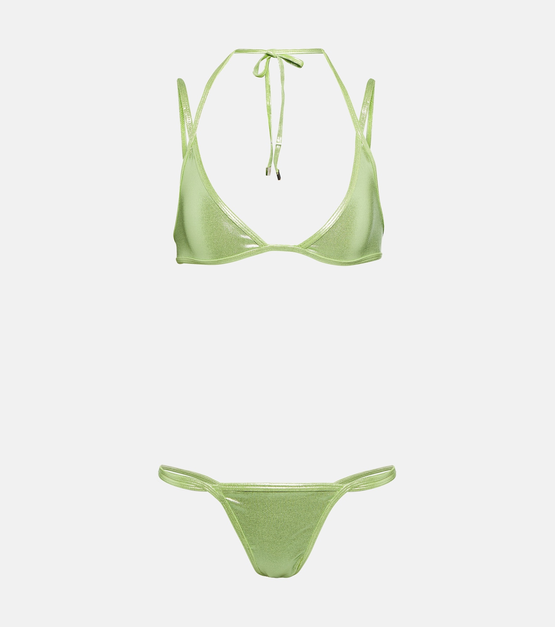 If you’re looking to turn heads on your next beach vacation, wear this bikini top from The Attico. It’s a green-hued halterneck style with strap details. Product Details - Made in Italy - Care instructions: machine wash at 30 degrees - Lining: 84% polyamide, 16% elastane - Designer color name: Mint - Material: 13% elastane, 87% polyamide - Item number: P00748443 Size & Fit - True to size - Minimal coverage - High-cut leg - The model seen in the picture is 178cm-5'10", cup size B, and wearing a size XS - Unpadded Top