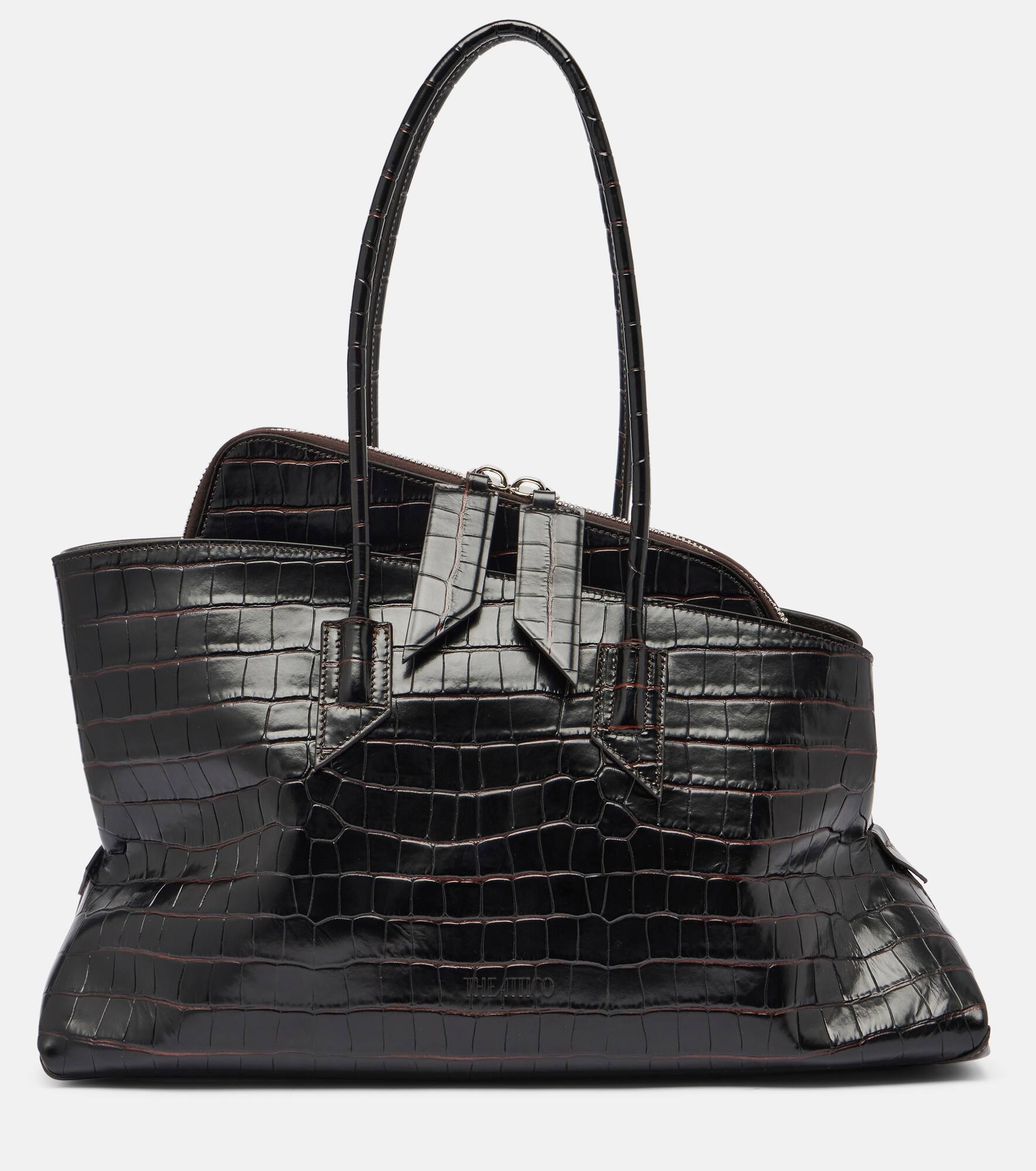 The Attico’s message is simple – it’s time to dress up. The La Passeggiata Medium tote bag is crafted from crocodile-effect leather and boasts the brand's hallmark, asymmetric silhouette. Product Details - Material: leather - Lining: suede - Made in Italy - Designer color name: Coffeee - Item color: brown - Closure: two-way zipped top - Hardware color: silver - Includes: dust bag - Item number: P01058214 Size & Fit - Min. height 19cm-7.5" - Max. height 29cm-11.5" - Min. width 26cm-10" - Max. width 42cm-16.5" - Depth 15cm-6" - Length of handles 61cm-24"