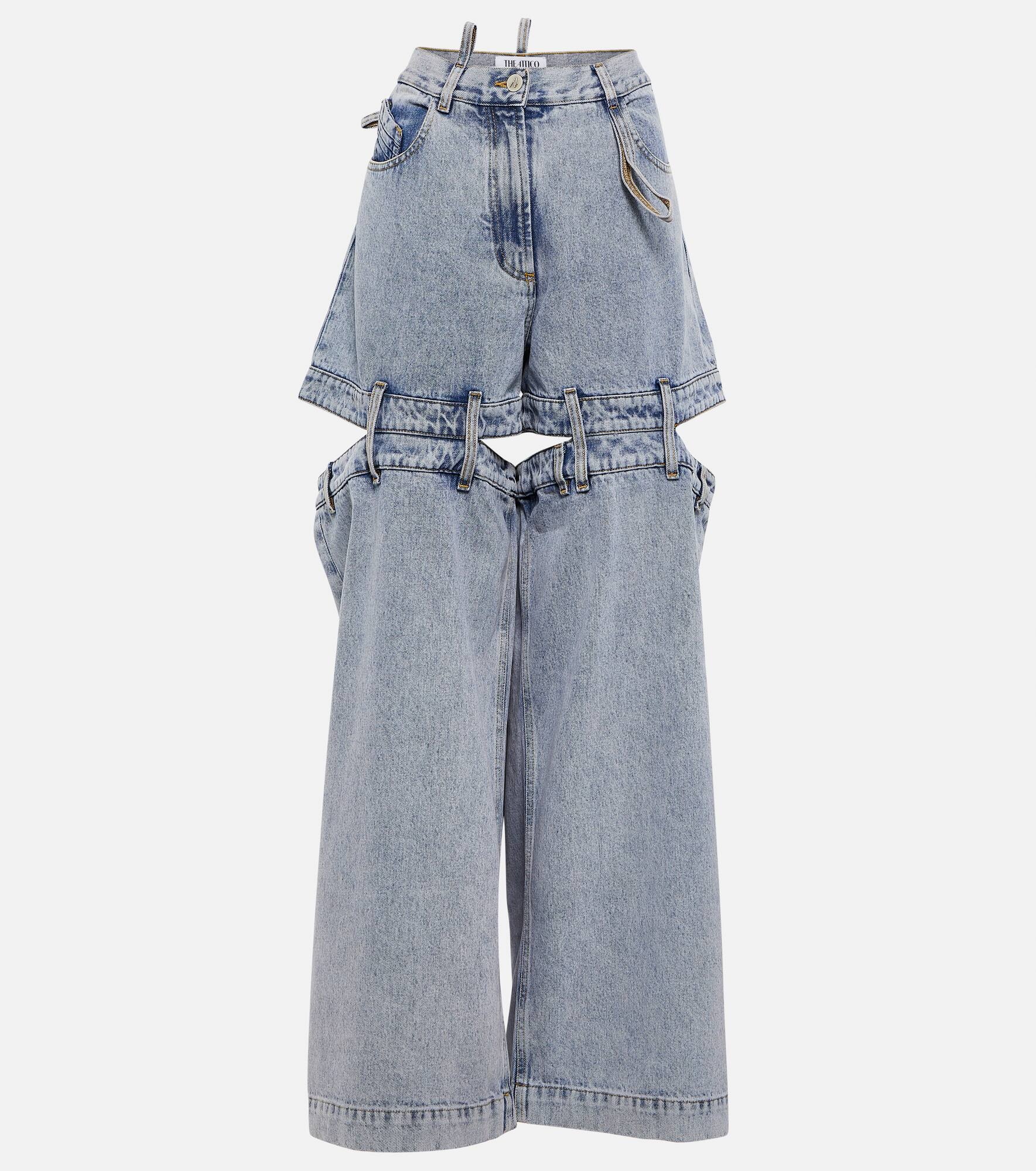 Refresh your edit with contemporary designs like these jeans from The Attico. They're made in Italy and feature a low-rise with wide legs for a cool finish. Product Details - Pockets: five pockets - Made in Italy - Material: 100% cotton - Designer color name: Vintage Blue - Care instructions: machine wash at 30 degrees - Closure: zipper fly, button fastening - Item number: P00828272 Size & Fit - Fits large to size - we recommend trying one size smaller - Non-stretchy fabric - Wide-leg - Low-rise - The model seen in the picture is 178cm-5'10" and wearing a size 25