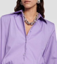 Margot minidress from The Attico effortlessly transitions from office chic to a stunning dinner outfit. Made from cotton, with its relaxed bodice, button fastening, and removable shoulder padding, it offers versatile style for any occasion. Product Details - Care instructions: machine wash at 40 degrees - Made in Italy - Material: 100% cotton - Closure: buttoned front - Item number: P00848659 Size & Fit - True to size - Oversized shoulders - Shoulder pad inserts - Fitted bodice, loose skirt - The model seen in the picture is 178cm-5'10" and wearing a size IT 40