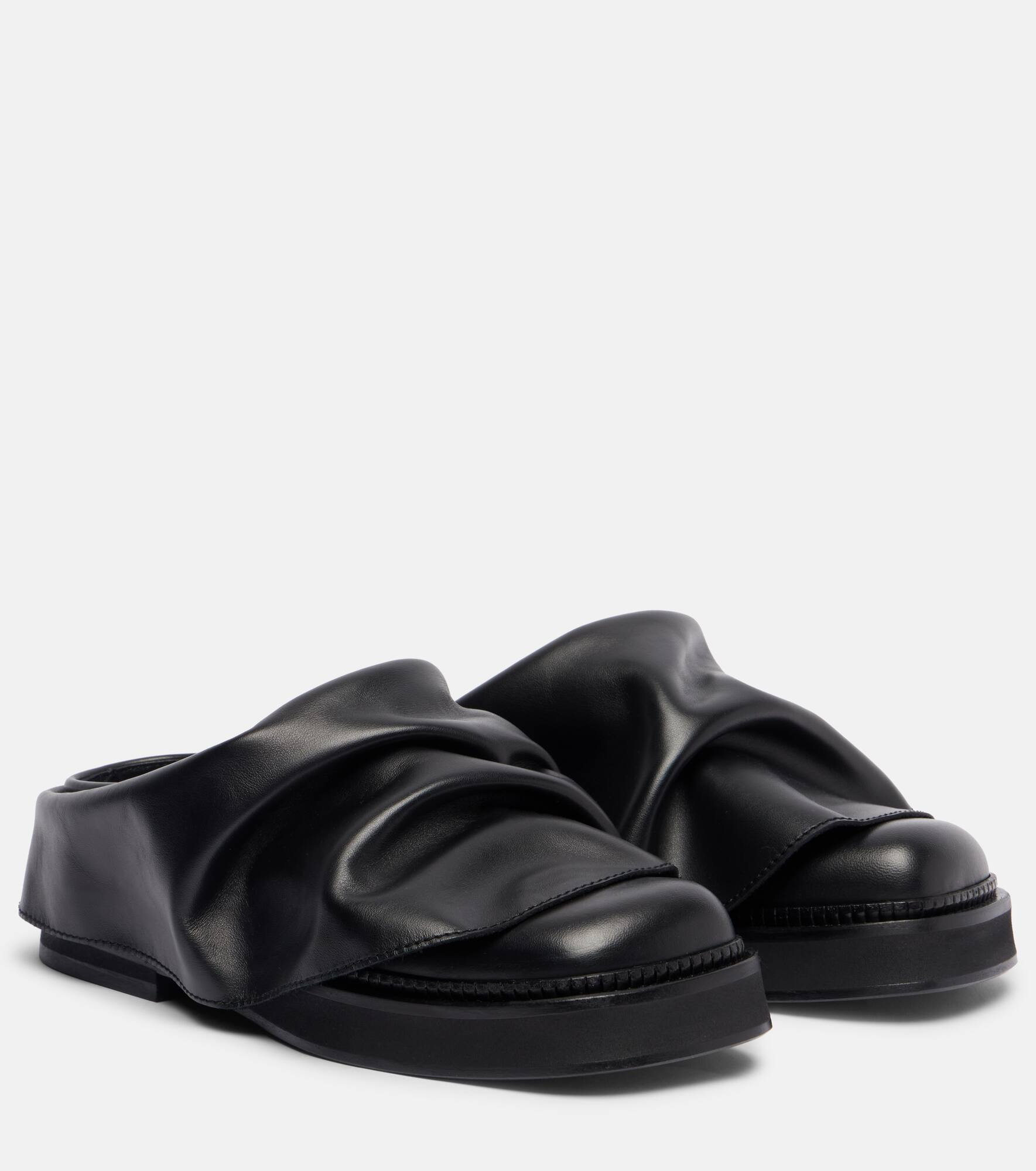 The Attico reimagines a classic silhouette with the Mini Robin mules, crafted in Italy from leather. This bold design features distinctive draped shafts that cover the upper, creating a flowing, layered effect. Product Details - Upper: leather - Lining: leather - Sole: leather insole and sole - Toe shape: square toe - Made in Italy - Includes: dust bags, shoe box - Designer color name: Black - Item color: black - Item number: P01069423 Size & Fit - True to size - European sizes - 5cm-2" heel (size EU 38) - 3,5cm-1.5" platform (size EU 38)
