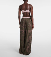 Printed wool gabardine wide-leg pants