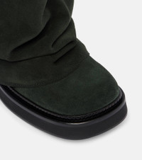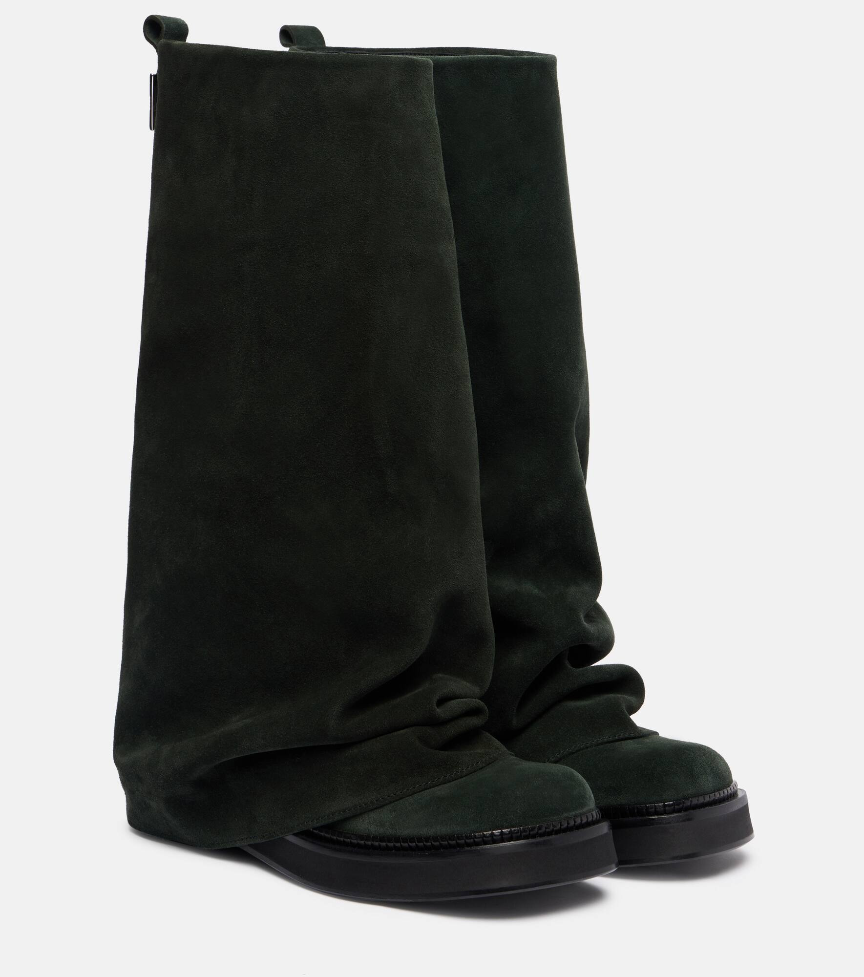 The Attico puts a refreshing twist on a classic style with the Robin combat boots, crafted in Italy from soft suede. This bold piece features silver-toned hardware and stands out with fold-over layers that cover both uppers. Product Details - Upper: leather (suede) - Lining: leather - Sole: leather insole and sole - Toe shape: square toe - Made in Italy - Includes: dust bag, shoe box - Designer color name: Moss - Item color: green - Item number: P01069471 Size & Fit - True to size - Wide - European sizes - 4cm-1.5" heel (size EU 38) - 2,5cm-1" platform (size EU 38) - 3,5cm-1.5" shaft height (size EU 38) - 38cm-15" shaft width (size EU 38) - shaft width measured on largest part of boot