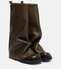 The Attico puts a refreshing twist on a classic style with the Robin combat boots, crafted in Italy from leather. This bold design features silver-toned hardware and distinctive draped shafts that create a layered effect. Product Details - Upper: leather - Lining: leather - Sole: leather insole and sole - Toe shape: square toe - Made in Italy - Includes: dust bag, shoe box - Designer color name: Green Fade - Item color: green - Item number: P01069439 Size & Fit - True to size - 5cm-2" heel (size EU 38) - 4cm-1.5" platform (size EU 38) - 32cm-12.5" shaft height (size EU 38) - 41cm-16" shaft width (size EU 38) - shaft width measured on largest part of boot
