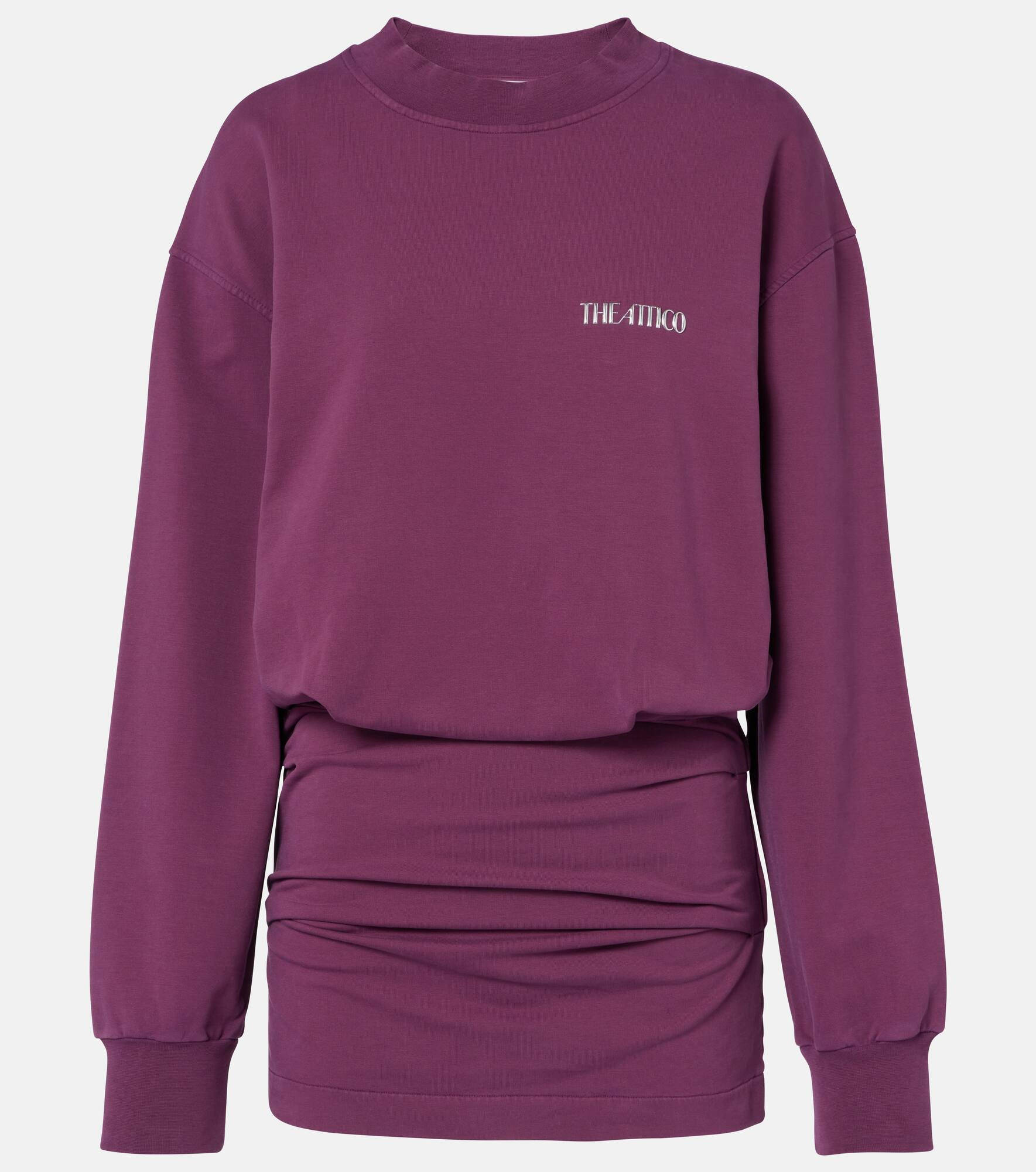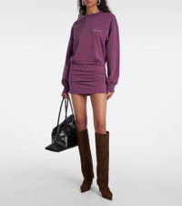Blending casual ease with sophistication, this minidress from The Attico is crafted from a cotton-blend fleece with a sweater-inspired design. This piece features ribbed trims, a ruched skirt, and the brand’s signature at the front. Product Details - Material: 96% cotton, 4% elastane - Care instructions: hand wash - Made in Portugal - Designer color name: Burgundy - Item color: burgundy - Material II: 97% cotton, 3% elastane - Collar: crewneck - Cuff: elasticated - Item number: P01046017 Size & Fit - True to size - Dropped shoulders - Loose bodice, fitted skirt - Slightly stretchy fabric - The model seen in the picture is 178cm-5'10" and wearing a size IT 40