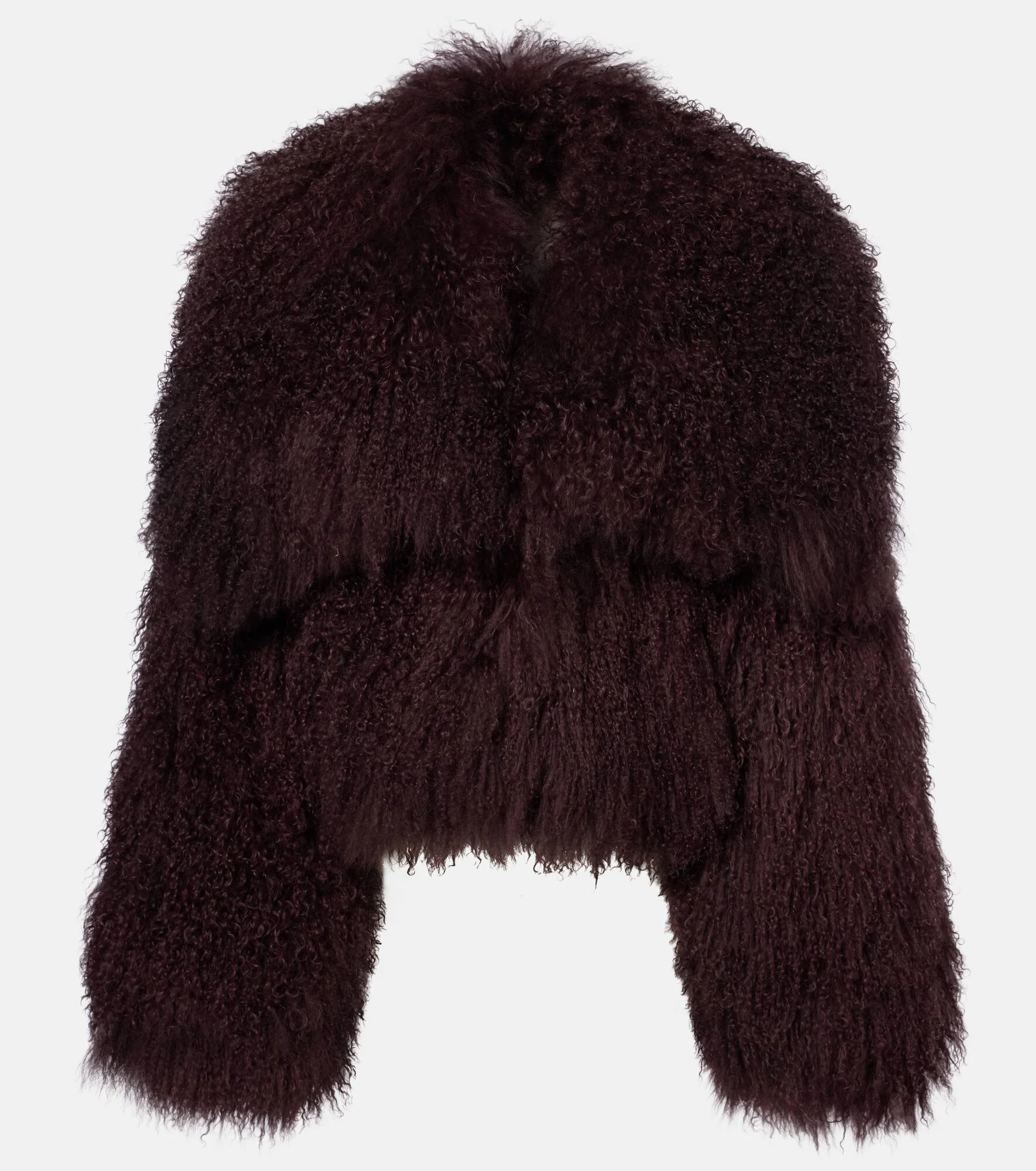 The Attico’s message is simple – it’s time to dress up. Made in Italy, this jacket makes a statement with its voluminous plush shearling construction. Product Details - Material: 100% shearling - Care instructions: specialist clean - Made in Italy - Designer color name: Dark Grapes - Item color: burgundy - Closure: hook fastening - Drawstring at the hem for adjustable fit - Lining: 100% viscose - Includes: garment bag - Item number: P01107575 Size & Fit - True to size - Dropped shoulders - Oversized - Non-stretchy fabric - Slightly cropped - The model seen in the picture is 178cm-5'10" and wearing a size IT 40