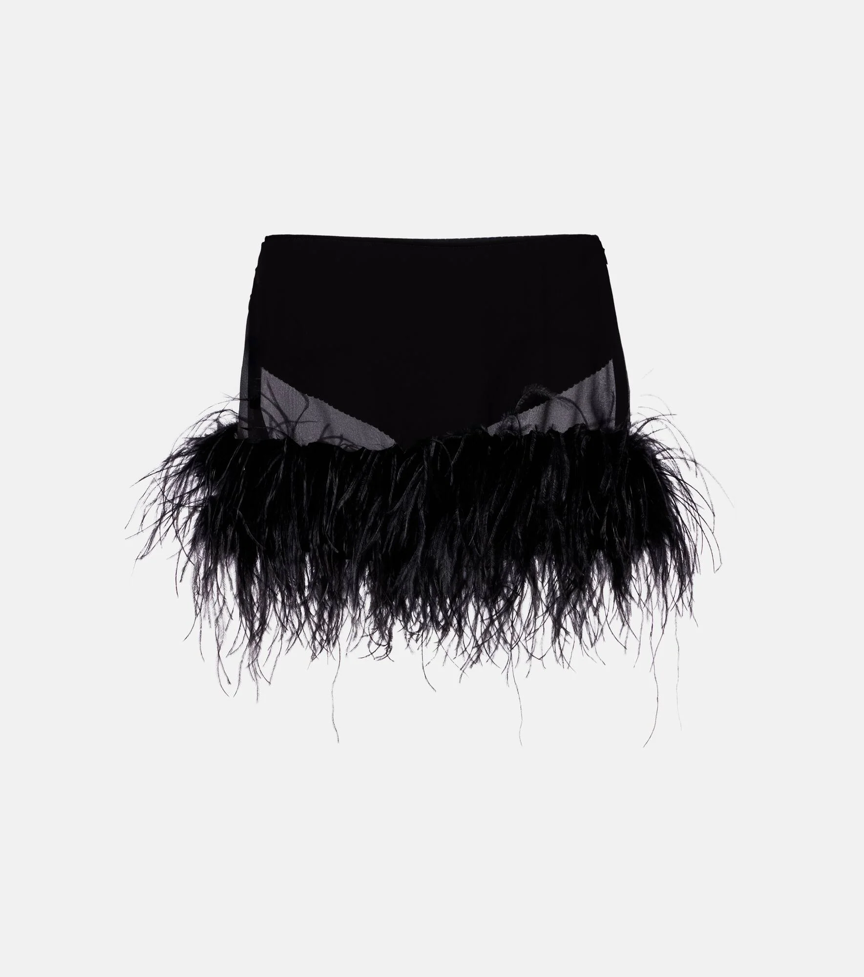 This miniskirt by The Attico embodies the brand’s glamorous, cosmopolitan spirit. Crafted from sheer fabric, the style is cut to an A-line silhouette and finished with a lavish feather trim. Product Details - Material: 100% polyamide - Care instructions: hand wash - Made in Italy - Designer color name: Black - Item color: black - Lining: 80% polyamide, 20% elastane - Trim: 100% ostrich feathers - Contains non-textile parts of animal origin - Closure: invisible zipper - Includes: garment bag - Item number: P01108555 Size & Fit - True to size - Semi-sheer - Fitted - Partly stretchy fabric - Medium-cut leg - The model seen in the picture is 178cm-5'10" and wearing a size IT 40