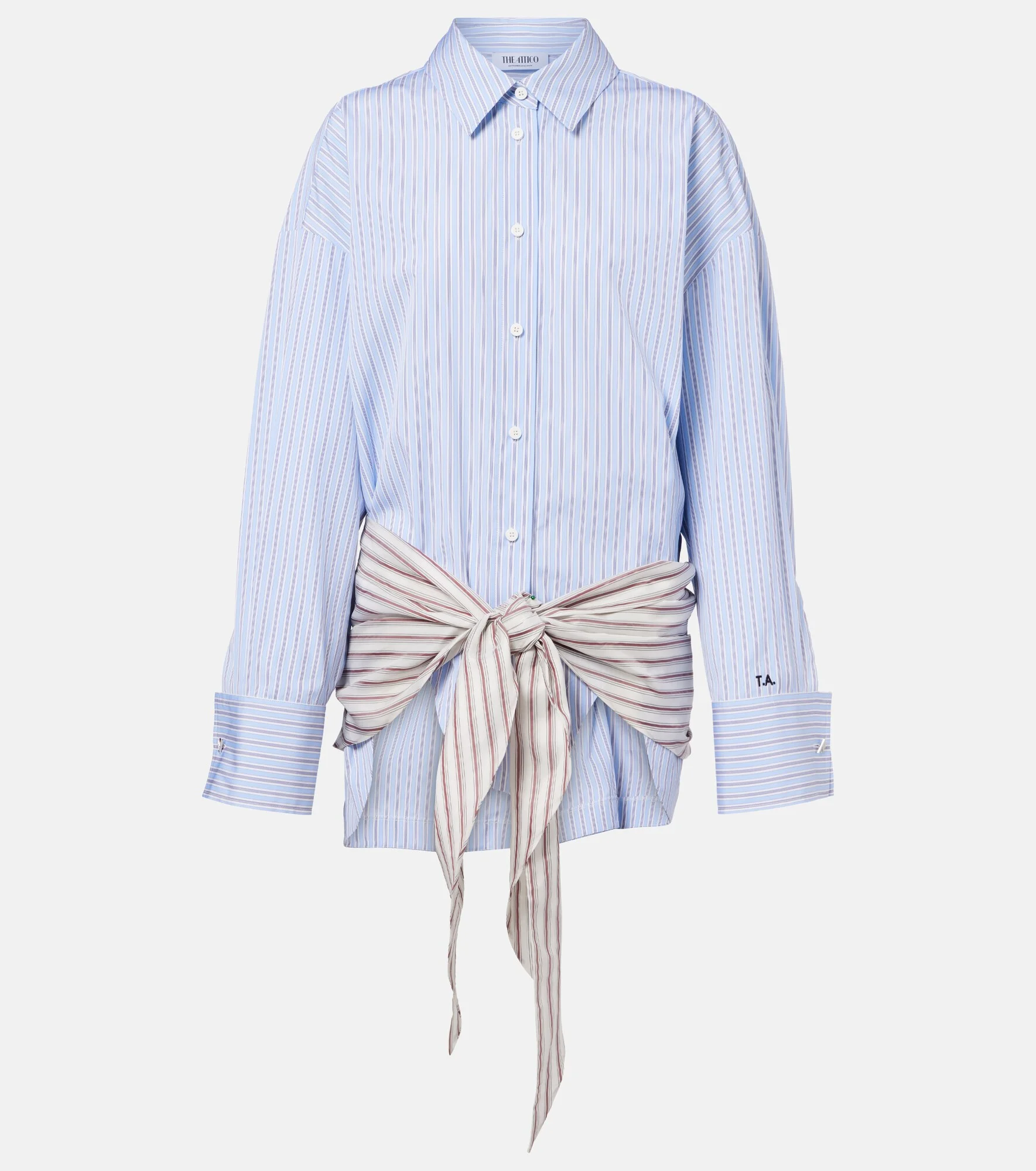 The Attico’s message is simple – it’s time to dress up. Made from lightweight cotton, this shirt dress features a classic striped pattern and is complete with a self-tie overlay at the waistline. Product Details - Material: 100% cotton - Care instructions: dry clean - Made in Italy - Color: blue - Designer color name: Multicolor - Material II: 100% cupro - Closure: buttoned front, belted waist - Collar: classic (Straight point) - Cuff: cufflinks - Item number: P01152208 Size & Fit - True to size - Designed for a loose fit - Non-stretchy fabric - High-cut leg - The model seen in the picture is 178cm-5'10" and wearing a size IT 40