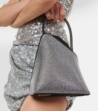 The Attico’s message is simple – it’s time to dress up. The Sunset Mini tote bag is made from satin that's embellished with crystals for a glamorous evening look. Product Details - Top handle - Internal details: card slot, leather lining - Designer color name: Crystal/Black - Made in Italy - Closure: magnetic fastening - Protective feet - Comes with dust bag - Material: fabric - Trim: leather - Item number: P00804582 Size & Fit - Max. height 22cm-8.5" - Max. width 19cm-7.5" - Max. depth 6,5cm-2.5" - Length of handle 34cm-13.5"