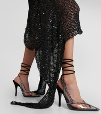 The Attico’s message is simple – it’s time to dress up. The Venus pumps are made with crystal-embellished chrome uppers in a pointed-toe silhouette that's secured with slingback straps and set atop stiletto heels. Product Details - Comes with extra heel tips - Sole: leather insole and sole - Toe shape: pointed toe - Comes with a box - Designer color name: Silver/Black - Upper: leather - Closure: ankle strap - Made in Italy - Comes with dust bags - Item number: P00805356 Size & Fit - True to size - European sizes - 12cm-4.5" heel (size EU 38)