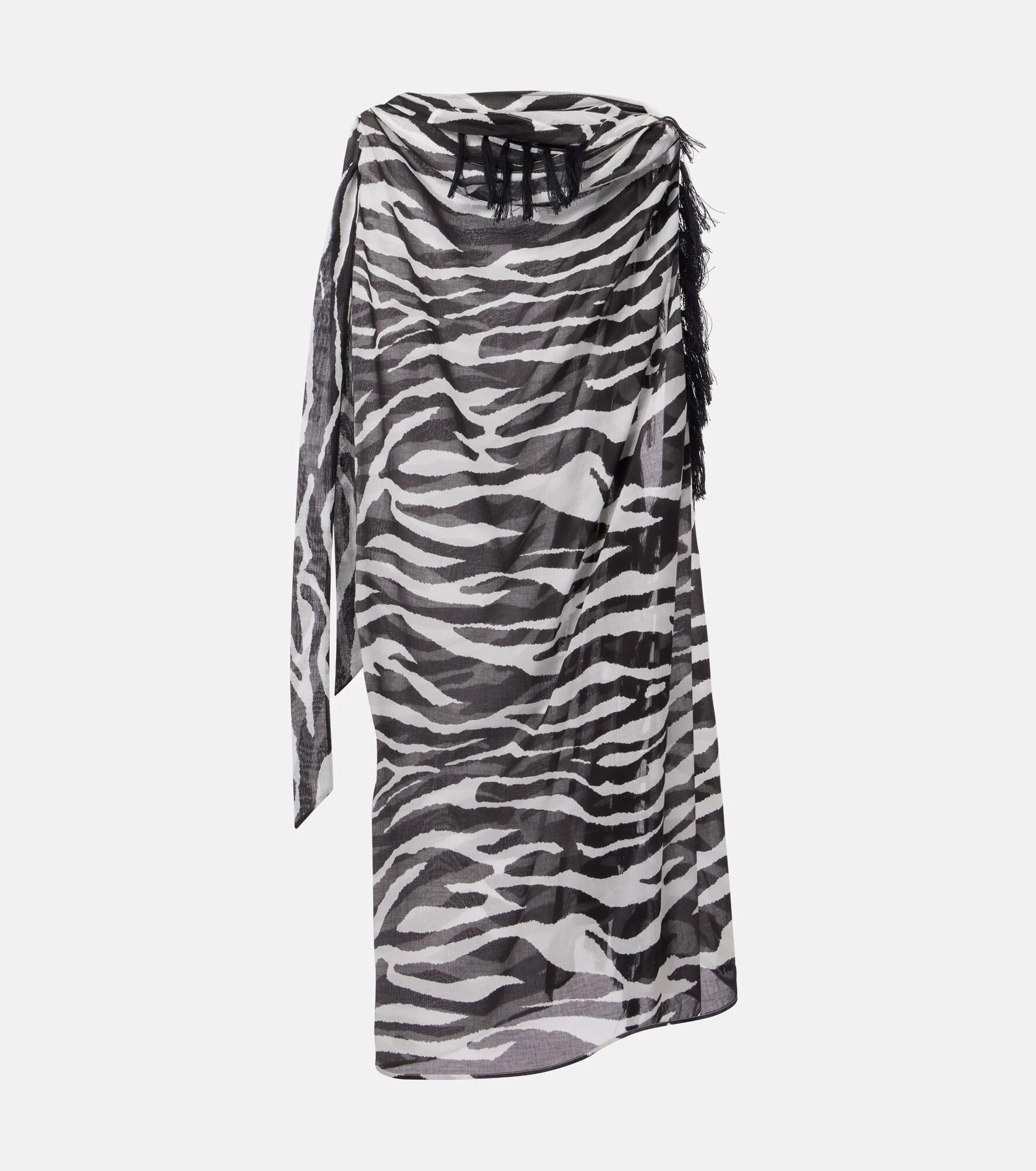 Radiate glamour from beach to boardwalk in this beach cover-up from The Attico. Decorated all over with a striking zebra print, it's made from lightweight, breathable cotton muslin with tasseled finishes. Product Details - Material: 100% cotton - Care instructions: hand wash - Made in Italy - Designer color name: White / Black - Item color: black, white - Item number: P01034830 Size & Fit - Length 110cm-43.5" - Width 136cm-53.5" - Length of fringe 8,5cm-3.5"