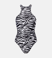 This eye-catching swimsuit from The Attico deserves a spot in your vacation rotation. Featuring an all-over zebra print, the style is completed with high-cut legs. Product Details - Material: 80% polyamide, 20% elastane - Care instructions: hand wash - Made in Portugal - Designer color name: White/Black - Item color: black, white - Lining: 84% polyester, 16% elastane - Item number: P01034813 Size & Fit - True to size - Unpadded Top - High-cut leg - The model seen in the picture is 178cm-5'10", cup size B, and wearing a size XS