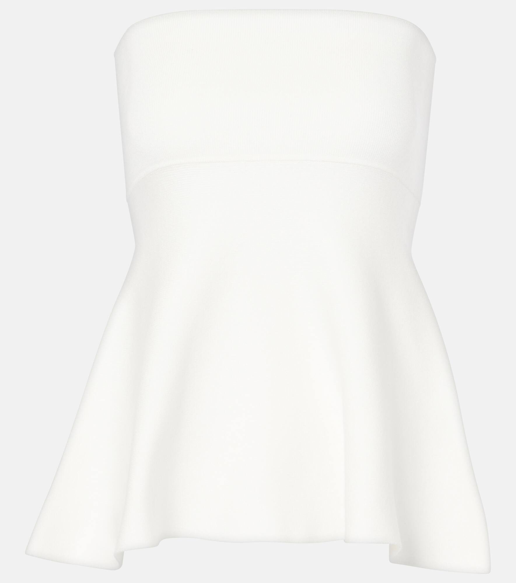 Product Details - Material: 72% viscose, 28% polyester - Care instructions: hand wash - Made in Italy - Designer color name: Off White - Item number: P00972617 Size & Fit - True to size - Strapless - Cinched waist - Stretchy fabric - Falls to the hip - The model seen in the picture is 178cm-5'10" and wearing a size XS