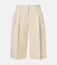 The Frankie Shop has captured the hearts of fashion insiders with their low-effort, high-impact essentials. The Bilbao Bermuda shorts are crafted from lightweight fabric and feature a classic silhouette with deep pleats on the front. Product Details - Material: 67% lyocell, 33% linen - Care instructions: hand wash - Made in China - Designer color name: Cement - Item color: beige - Lining: 100% polyester - Closure: zipper fly, button and hook fastenings - Pockets: slant pockets, back pocket - Belt loops - Item number: P01075507 Size & Fit - True to size - Non-stretchy fabric - Wide-leg - The model seen in the picture is 178cm-5'10" and wearing a size XS