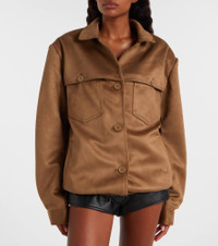 The Frankie Shop has captured the hearts of fashion insiders with their low-effort, high-impact essentials. The Hester jacket is designed with an oversized silhouette and padded shoulders, and stands out with its suede-like effect. Product Details - Material: 100% polyester - Care instructions: dry clean - Made in China - Designer color name: Camel - Item color: beige - Lining: 96% polyester, 4% elastane - Lining II: 100% polyester - Collar: spread - Shoulder pads - Closure: buttoned front - Cuff: one button - Pockets: angled chest pockets, welt pockets - Elasticated waistband - Fully lined - Item number: P01097054 Size & Fit - True to size - For a closer fit, we recommend taking one size down - Shoulder pad inserts - Dropped shoulders - Elasticated hem - Oversized - Non-stretchy fabric - Falls below the hip - The model seen in the picture is 178cm-5'10" and wearing a size XS