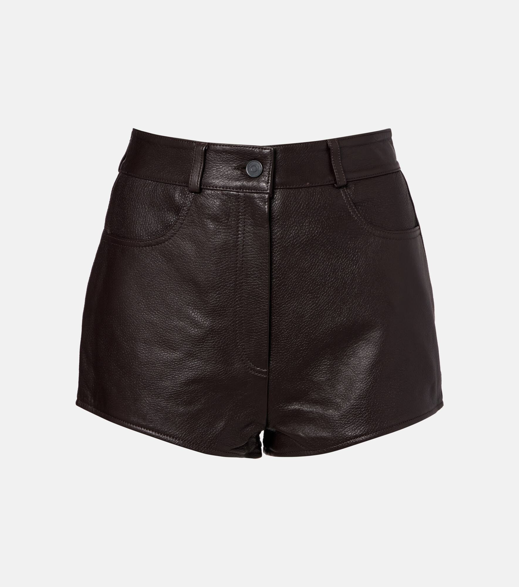 Crafted from lamb leather, the Loen shorts by The Frankie Shop are designed with a micro silhouette for a bold look. The piece features a high-rise waistline and is finished with belt loops. Product Details - Material: 100% lamb leather - Care instructions: specialist clean - Made in India - Designer color name: Vintage Brown - Item color: brown - Lining: 100% polyester - Hardware color: antique silver - Closure: zip and button fastening - Pockets: frogmouth pockets, back pockets - Belt loops - Item number: P01097088 Size & Fit - Fits small to size - we recommend trying one size larger - Non-stretchy fabric - Slim-leg - High-waisted - The model seen in the picture is 178cm-5'10" and wearing a size S