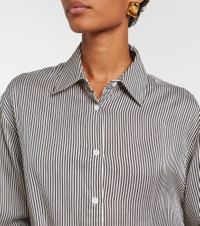 The Frankie Shop offers easy-to-wear essentials that add style and versatility to your wardrobe. The Lui shirt is a lightweight piece featuring a black and white stripe pattern. Product Details - Material: 87% viscose, 13% silk - Care instructions: dry clean - Made in Morocco - Designer color name: Black/White Stripe - Item color: black, white - Collar: classic (Straight point) - Closure: buttoned front - Cuff: buttoned - Item number: P01092794 Size & Fit - True to size - Dropped shoulders - Designed for a loose fit - Non-stretchy fabric - Falls below the hip - The model seen in the picture is 178cm-5'10" and wearing a size XS