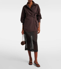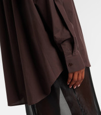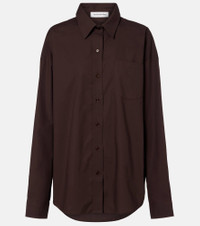 The Frankie Shop has captured the hearts of fashion insiders with their low-effort, high-impact essentials. Defined by an oversized silhouette, the Ornella shirt is crafted from lightweight cotton and features side button fastening for an asymmetric look. Product Details - Material: 100% cotton - Care instructions: machine wash at 30 degrees - Made in Morocco - Designer color name: Brown - Item color: brown - Collar: classic (Straight point) - Cuff: buttoned - Pockets: angled chest pocket - Closure: buttoned front - Hem: rounded - Item number: P01097100 Size & Fit - True to size - For a closer fit, we recommend taking one size down - Dropped shoulders - Oversized - Non-stretchy fabric - Falls below the hip - The model seen in the picture is 178cm-5'10" and wearing a size XS