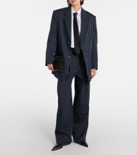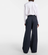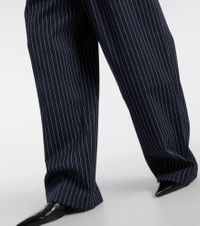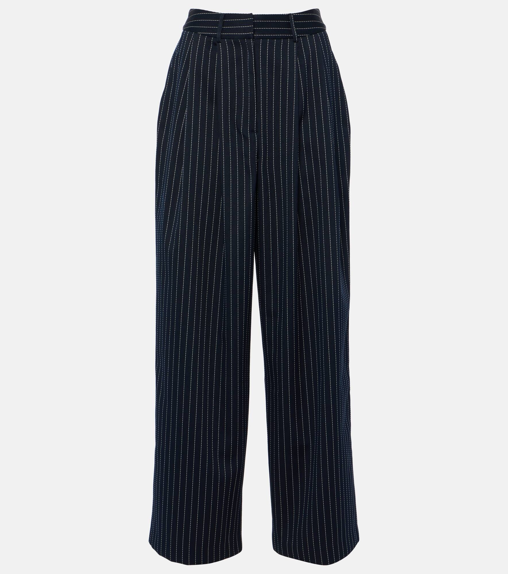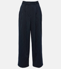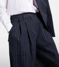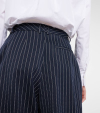 Product Details - Material: 59% polyester, 29% viscose, 12% wool - Care instructions: do not wash - Made in Portugal - Designer color name: Navy/ White Pinestripe - Lining: 100% polyester - Belt loops - Closure: zipper fly, button fastening - Pockets: side slit pockets, back pockets - Item number: P00929051 Size & Fit - True to size - Non-stretchy fabric - Wide-leg - High-waisted - The model seen in the picture is 178cm-5'10" and wearing a size XS
