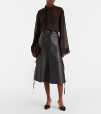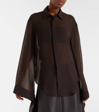 The Frankie Shop has captured the hearts of fashion insiders with their low-effort, high-impact essentials. A prime example is the Verlin shirt, an everyday essential, made from sheer chiffon fabric and featuring flared, self-tied cuffs. Product Details - Material: 100% polyester - Care instructions: hand wash - Made in China - Color: brown - Designer color name: Dark Brown - Item color: brown - Collar: classic (Straight point) - Self-tie cuffs - Closure: buttoned placket - Item number: P01132057 Size & Fit - True to size - Dropped shoulders - Sheer - Designed for a loose fit - Non-stretchy fabric - Falls below the hip - The model seen in the picture is 178cm-5'10" and wearing a size XS