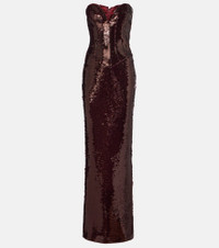 The New Arrivals Ilkyaz Ozel is known for striking silhouettes and refined details – designed to turn heads at any event. The Azzurra gown is fully sequined and features a built-in corset for a flattering fit. Product Details - Material: 100% polyester - Care instructions: dry clean - Made in Turkey - Designer color name: Burgundy - Item color: burgundy - Closure: zipped back - Built-in bustier - Long vent - Item number: P01060469 Size & Fit - True to size - Strapless - Internal boned corset for support - Fitted - Non-stretchy fabric - slit length 51cm-20" - The model seen in the picture is 178cm-5'10" and wearing a size FR 36