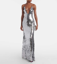 The New Arrivals Ilkyaz Ozel is known for striking silhouettes and details – designed to turn heads at any event with timeless femininity. The Claudie gown is fully sequined and features a deep V-neck and open back. Product Details - Material: 100% polyester - Care instructions: dry clean - Made in Turkey - Designer color name: 2AM - Item color: silver - Collar: V-neck - Closure: concealed zipper, zipped back, hook-fastening back - Item number: P01060470 Size & Fit - True to size - Low back - Fitted - Non-stretchy fabric - The model seen in the picture is 178cm-5'10" and wearing a size FR 36