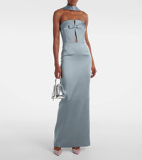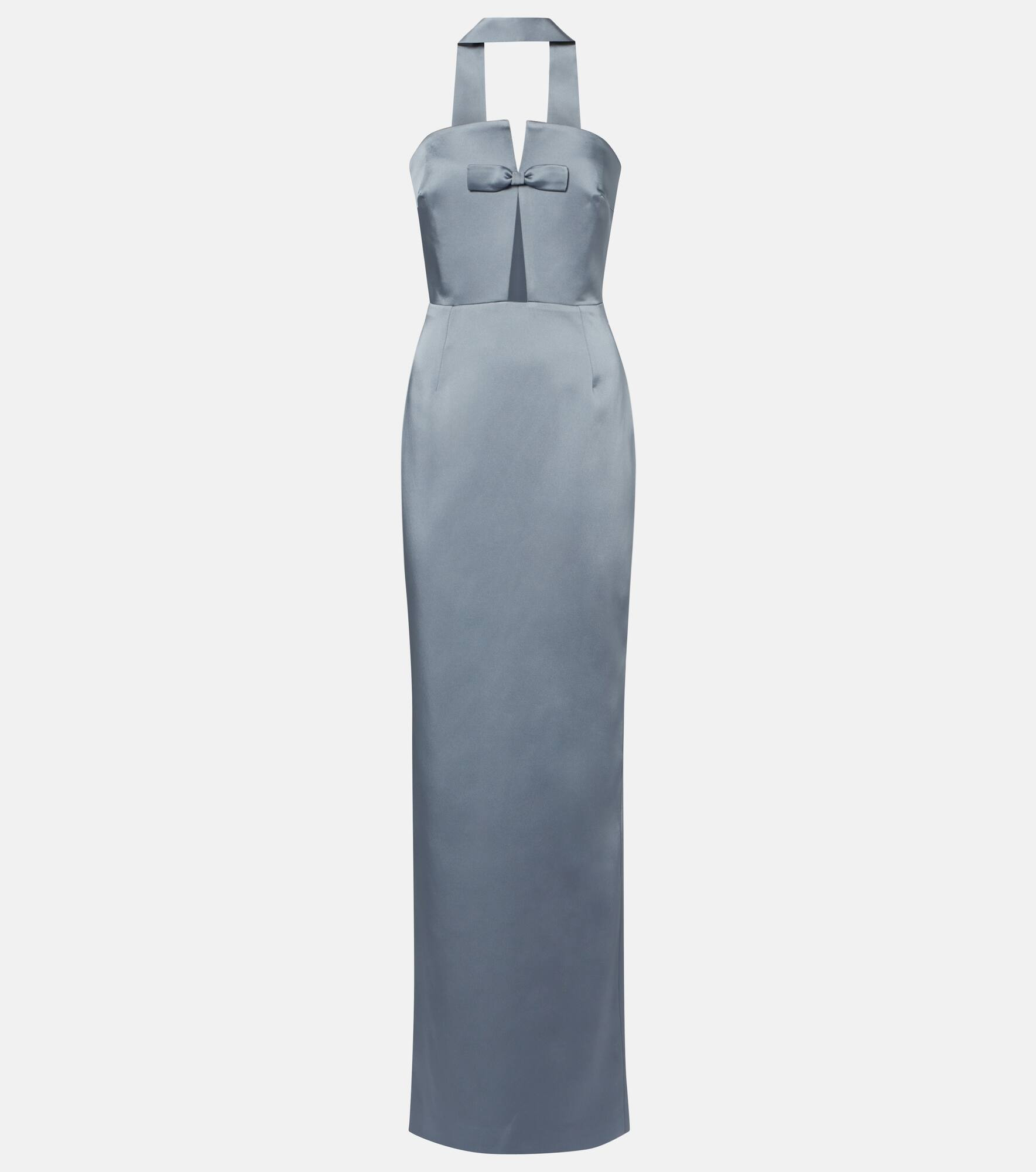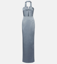 Holly bow-embellished cutout satin gown Light gray