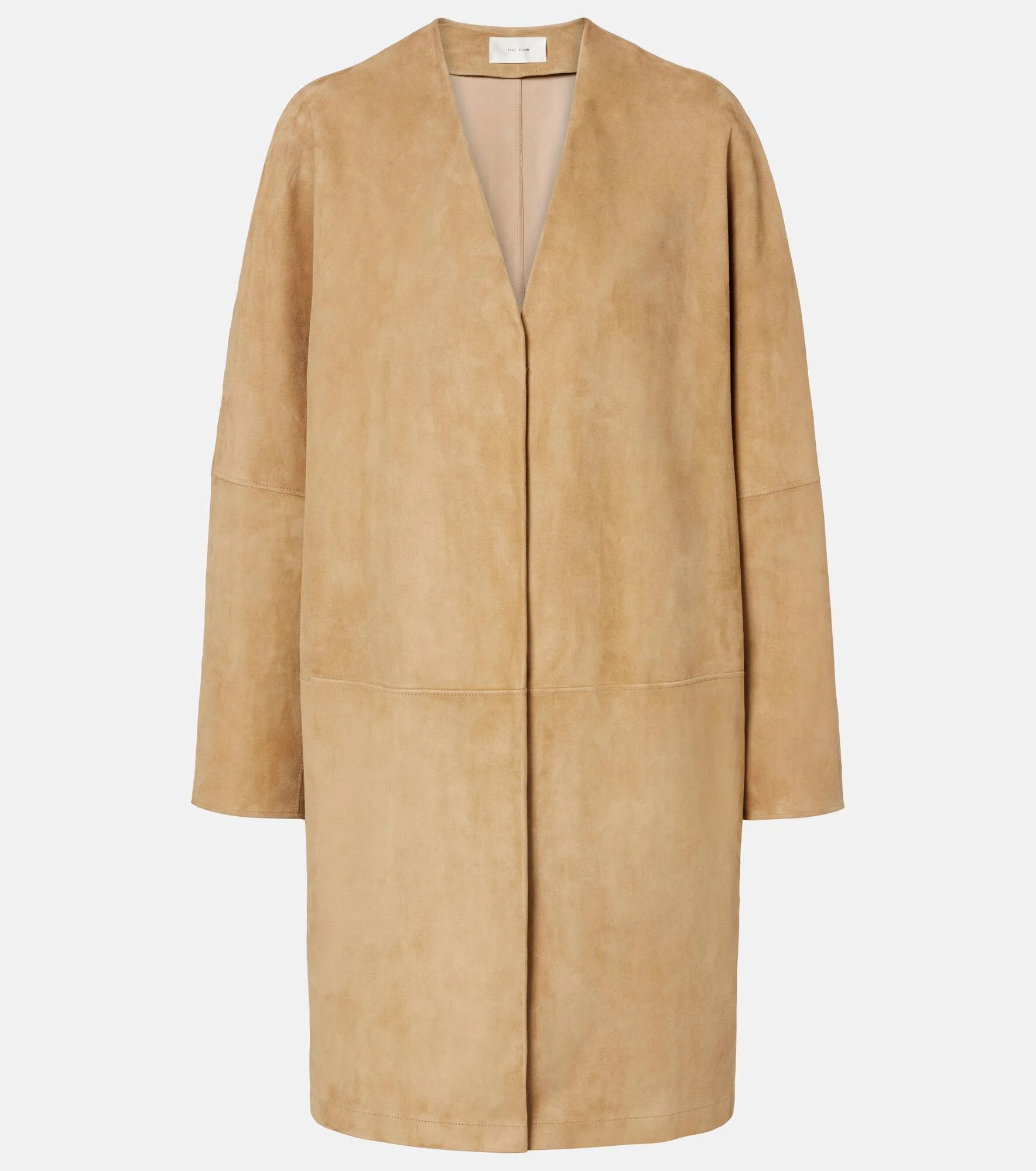 A deep affection for refined and timeless fashion influences The Row's dedication to craftsmanship and quality. The Alarico coat is Italian-made from heavyweight suede. Product Details - Material: 100% lamb leather (suede) - Care instructions: specialist clean - Made in Italy - Designer color name: Beige - Item color: beige - Pockets: side slit pockets - Collarless - Item number: P01115295 Size & Fit - True to size - Designed for a loose fit - Non-stretchy fabric - The model seen in the picture is 178cm-5'10" and wearing a size US 4