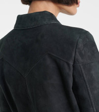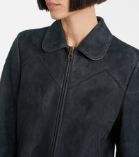 A deep affection for refined and timeless fashion influences The Row's dedication to craftsmanship and quality. The Axelette suede jacket has tonal embroidery and a smart collar at the neck. Product Details - Material: 100% lamb leather (suede) - Care instructions: specialist clean - Made in Italy - Designer color name: Faded Black - Item color: black - Item number: P01035278 Size & Fit - Fits small to size - we recommend trying one size larger - Straight fit - Non-stretchy fabric - Slightly cropped - Height of model is 175cm-69" and wears a size US 6