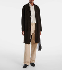A deep affection for refined and timeless fashion influences The Row's dedication to craftsmanship and quality. Made with soft suede, the Babilonia coat can be cinched at the waist with the accompanying belt. Product Details - Material: 100% lamb leather - Care instructions: do not wash - Made in Italy - Designer color name: Dark Brown - Item color: brown - Item number: P01035279 Size & Fit - True to size - Dropped shoulders - Designed for a loose fit - Non-stretchy fabric - The model seen in the picture is 178cm-5'10" and wearing a size US 4