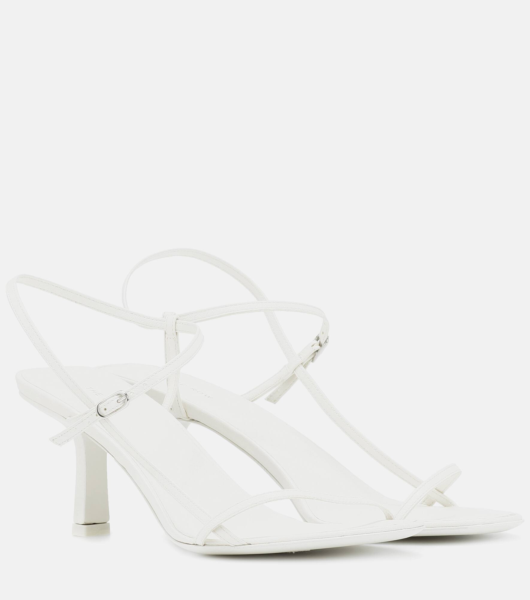 The Bare sandals from The Row combine the label's signature minimalist approach with a clean optic-white colorway for results that are utterly elevated. Crafted from soft goat leather, this pair comes with a pared-down profile consisting of slim, barely-there straps and a modest heel height. Wear yours as a chic addition to warm-weather monochrome ensembles. Product Details - Lining: leather - Upper: lamb leather - Sole: leather insole and sole - Toe shape: almond open toe - Closure: buckle-fastening ankle strap - Designer color name: White - Made in Italy - Item number: P00331927 Size & Fit - True to size - European sizes - 7cm-3" heel (size EU 38)