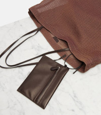 A deep affection for refined and timeless fashion influences The Row's dedication to craftsmanship and quality. The Barn tote bag is designed with a mesh upper and leather top handles and comes with a detachable zipped pouch. Product Details - Material: fabric, leather - Lining: fabric - Made in Italy - Designer color name: Acero Ans - Item color: brown - Top handles - Detachable zipped pouch - Closure: open top - Includes: dust bag - Item number: P01048993 Size & Fit - Height 38cm-15" - Width 35cm-14" - Depth 13cm-5" - Length of handles 56cm-22" - Clutch height 13cm-5" - Clutch width 18,5cm-7.5"